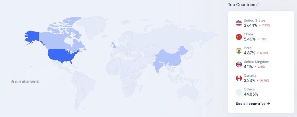As you can see, they had 18 million visits in September 2023. But maybe you want to know which countries are sending all those visitors. Well, you can check that as well.