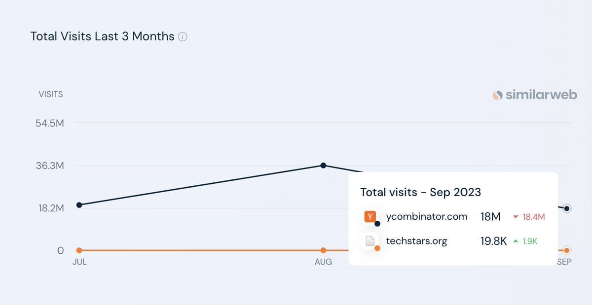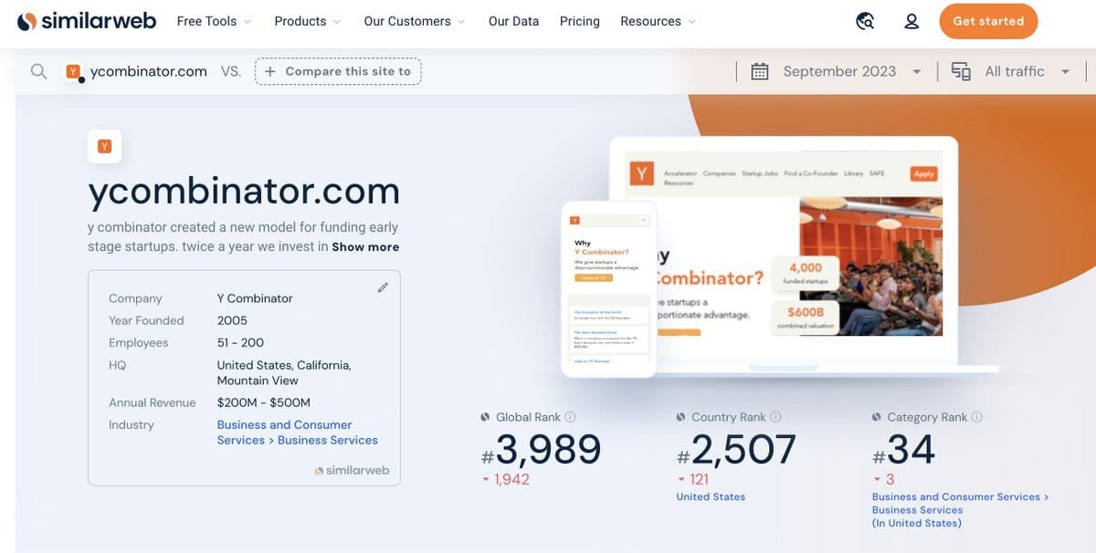 We can see that Y Combinator has a pretty high rank in their category. It's the 2,507th most visited site in the United States and the 3,989th most visited site in the world. They are massive, especially considering they are a venture firm. Let's see how much traffic they're getting.